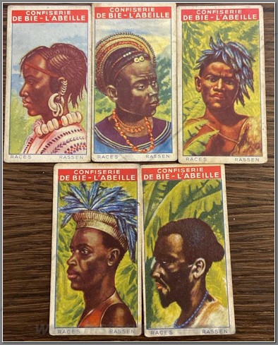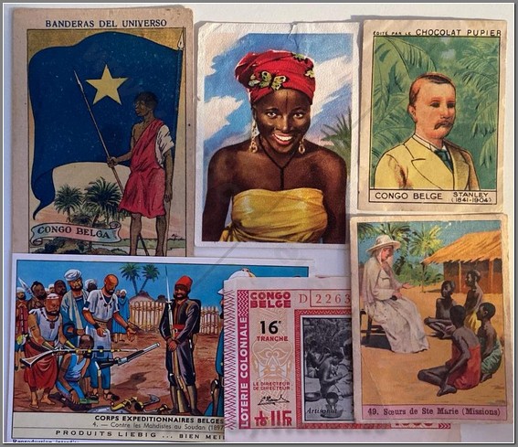 27 colonial period European chromos on the Belgian Congo. Coopers Tea, Baydex Cigarettes, Ogden’s Cigarettes, Nestle, Cafes Casino, Chocolat Pupier, Cote d’Or, Liebig Beef Extract, Chocolat Imperial, Chocolate Juncosa, Monte Christo Seife, Chocolate Amatller, Chocolat Klaus, Chocolat Felix Potin.