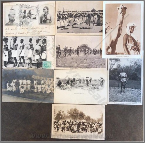 9 colonial postcards showing Somali regular and irregular military fighting for the Italians.