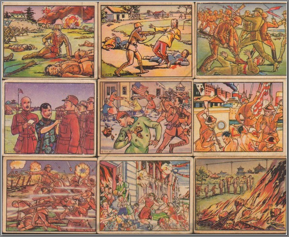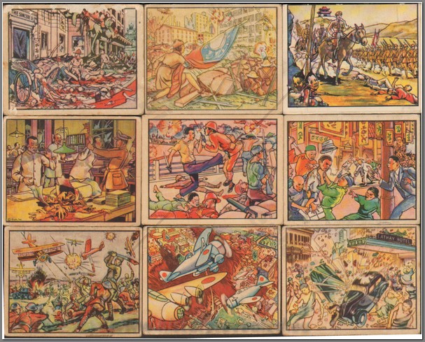 “To know the HORRORS OF WAR is to want PEACE. This is one of a series of 240 True Stores of Modern Warfare. Save to get them all,” as published by Gum Inc. A fitting statement for a personal discovery in the bubble-gum history of trading cards. Originally released February 17, 1938 by the Philadelphia-based Gum Inc., The HORRORS OF WAR anti-war trading cards were manifested by J. Warren Bowman, the company’s then president. Bowman art directed horrific war accounts working closely with the George Moll advertising agency in Philadelphia. The HORRORS OF WAR is a large set -- 288 cards divided into two series. The original set has 240 cards that focus on the Spanish Civil War, Ethiopian War and the Chinese-Japanese War. 48 Cards came later as a supplemental release. Among these cards are three that show Adolf Hitler, the beginnings of WWII history. By May 9, 1938 Gum Inc. reported sales of 50 million packets. May 20, 1938 the Japanese government seized 500 boxes of the gum in Yokohama and protests to Washington that the cards depict “false scenes of Japanese cruelties in China.” J. Warren Bowman described, “That was a good joke on the Japanese,” announcing, “I am making $44,000 a week on these cards and predict I will sell 100 million packets by year end.” He was right.