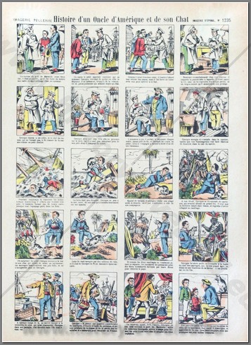Note: The Imagerie d'Épinal ( Vosges ) was originally a printing house founded in 1796 by Jean-Charles Pellerin and where the first images of Épinal were engraved in series. Initially a craft, Epinal imagery gradually became a real industry. The imagery initially used an image engraved in a wooden block ( xylography ). The sheet was then printed using a hand press, called a " Gutenberg ". Then the colorist intervened: using stencils, he applied the different colors necessary to finish the work with a round brush. Around 1850 , the appearance of lithography offered greater possibilities to the artist. Nevertheless, the images of Épinal still represented only 2% of the volume of images peddled in 1860. From 1829 to 1845, the imagery celebrated the Emperor Napoleon Bonaparte, his family, his marshals, his armies and his victories. Under the influence of Rousseauist thought, mid- nineteenth - century society began to see children as consumers. Riddles, dolls to assemble, and soldiers entered the catalog of imagery. At the dawn of the 20th century, the production of imagery was known throughout the world. Puppets, paper theatres, constructions and then, during the First World War , military subjects were all areas where dissemination was significant.