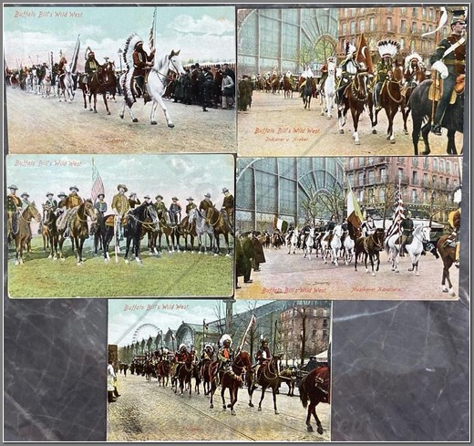 5 photo postcards of the Red Man Spectacle at the 1909 Earl’s Court Exhibition.
