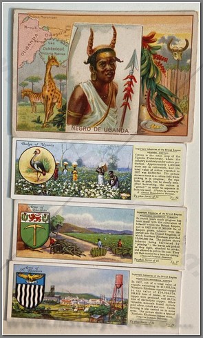 27 European chromos on colonial Sudan. Anstie’s Cigarettes, Baydex Cigarettes, Player’s Cigarettes, Will’s Cigarettes, Mitchell’s Cigarettes, Ogden’s Cigarettes, Churchman’s Cigarettes, Den Danske Margarinefabrik, Nestle, Chocolat Pupier, Chocolat Martougin, Librairie D’Education Nationale, Liebig Beef Extract.