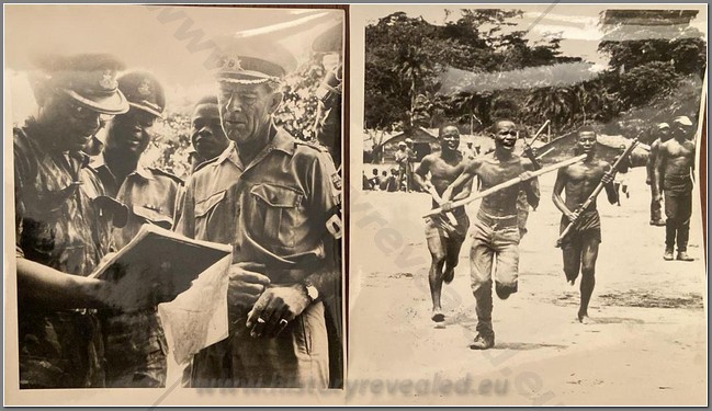 Two Spanish press photos of the Biafra War (1967-1970). One shows Biafra soldiers in training and the other shows Swedish representative General Arthur Raab talking with Nigerian army officers during the investigations carried out by international observers concerning alleged mass killings of Biafrans.