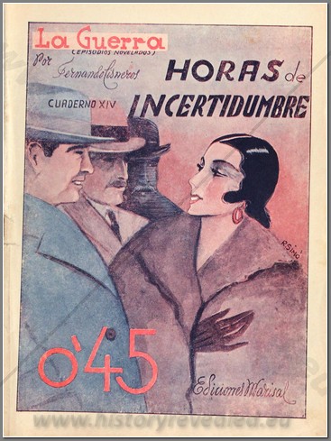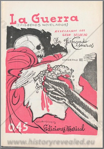 1937-1938 childrens coloring book by fascist artist Laokin. In 6 frames it glorifies the Nationalist cause, with marching off to war and supported by the people, the support from other fascist nations, triumph over animal-like communists, glorification of the Nationalist cause, Republicans cowtowing to the Nationists and Monarchists. Rare M ah kh