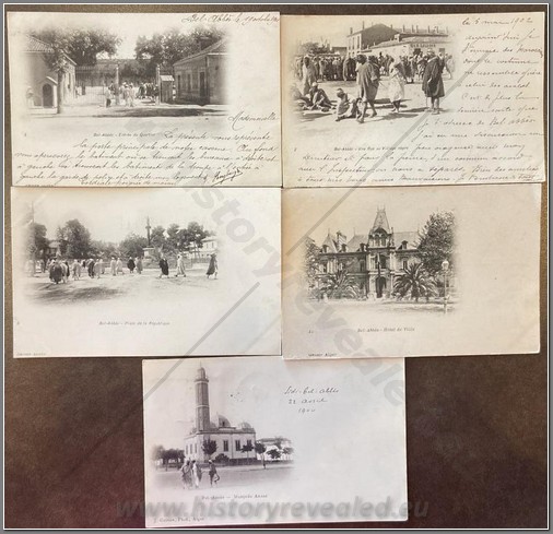 6 colonial postcards of Sidi -Bel-Abbes. Colonial and arab life and architectural interest. Many cards from the period leading up to and during the war of Independence. From the 1830s until 1962 the city was closely associated with the French Foreign Legion, being the location of its basic training camp, and the headquarters of its 1st Foreign Regiment. In the 1930s much of the old city walls were demolished. Wide boulevards and squares replaced the traditional quarters, causing the town to lose much of its former character.