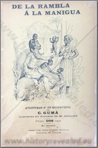 Rare 19th century auca Arivada Dels Voluntaris Catalans de Cuba. Size 31x42cm. Back covered with Japanese rice paper. Fraying at margin edges, not affecting images proper. OCC
